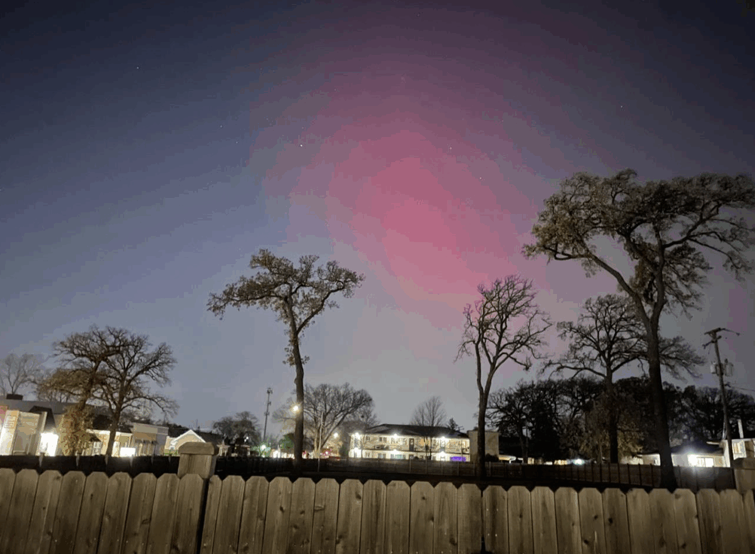 The biggest obstacle in viewing the aurora is light pollution; the bright city lights saturate our eyes and the sky, making seeing the aurora with the naked eye difficult. It is possible to see the lights using a camera with a long exposure time, but to see them with your own eyes, it’s best to find a place away from the city lights. Many people congregated on Chicago’s lakefront and got a spectacular view of the lights. Chicago and its suburbs were blessed with wonderfully clear skies, allowing for great views in the evening. As for myself, I was able to see them outside my home in the suburbs.